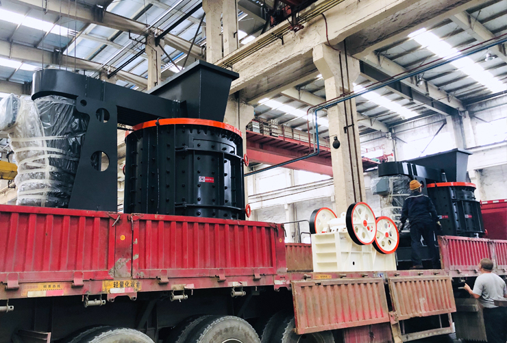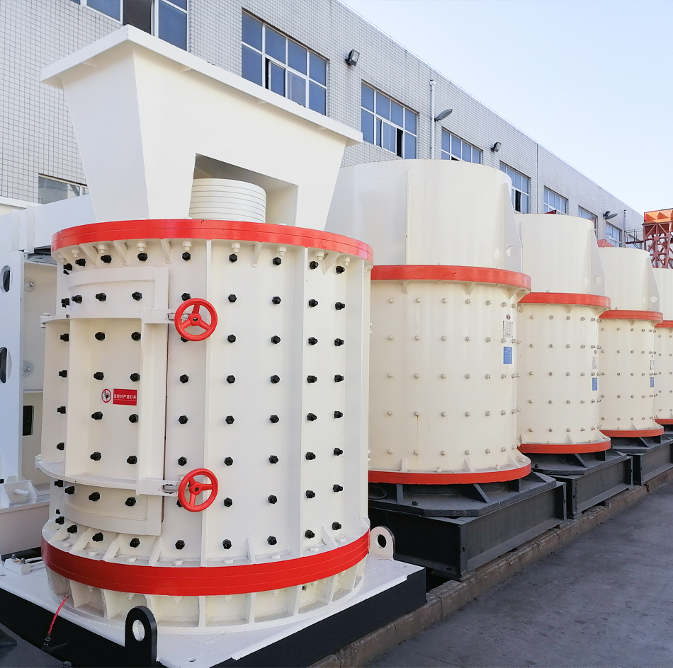 塊狀礦石由進料斗落入上破碎腔內(nèi)上甩料盤上,借助甩料盤的離心力將物料拋向筒體的內(nèi)壁,與安裝在內(nèi)壁上的反擊板猛烈碰撞,同時物料互相撞擊,使之破碎或產(chǎn)生大量發(fā)絲裂紋,接著物料進入錐形轉(zhuǎn)子腔后,在錐形空間呈螺旋狀下落,經(jīng)沖壓、擠壓,使已有裂紋的礦石進一步被破碎。由于錐形轉(zhuǎn)子與襯板間的斜度,促使較小的物料向下遷移,達到由大到小自動實現(xiàn)分級破碎。物料在錐形轉(zhuǎn)子腔內(nèi)受錘頭的打擊,高速運行塊料再次與反擊板碰撞、物料流相互碰撞使物料經(jīng)打擊、撞擊、剪切、擠壓面粉碎,從而提高破碎效率。