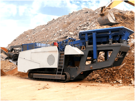 移動(dòng)破碎站正在處理建筑垃圾